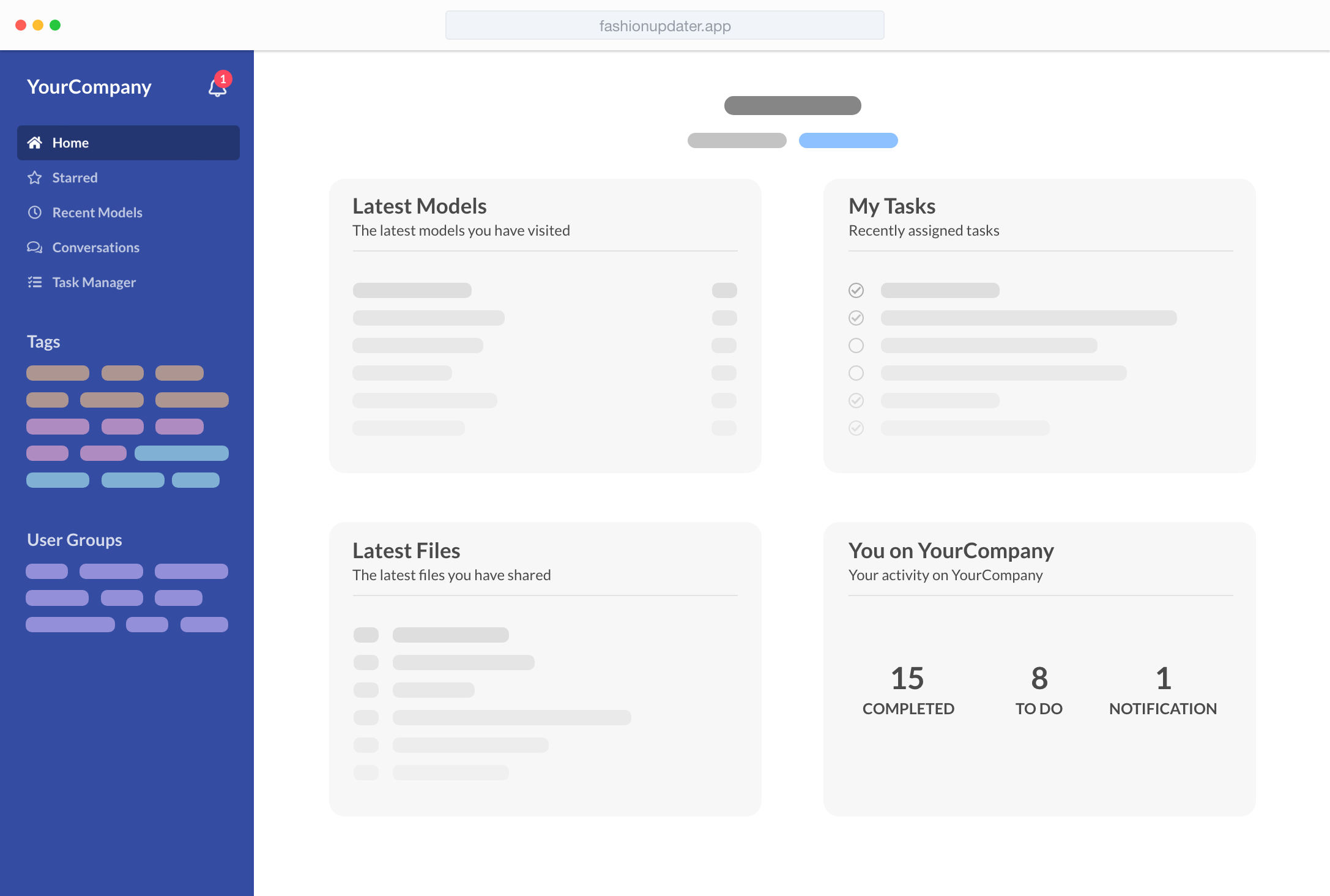 In Fashionupdater information is cataloged thanks to Models and Conversations: use them to add messages, files, images, text notes and everything necessary to carry out your work and that of your team.